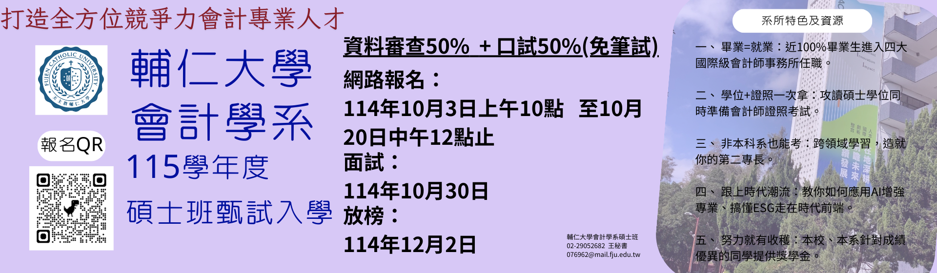 - TOP [碩士班] 「甄」的就是你!輔大會計碩士班~115學年度甄試入學招生開始囉!