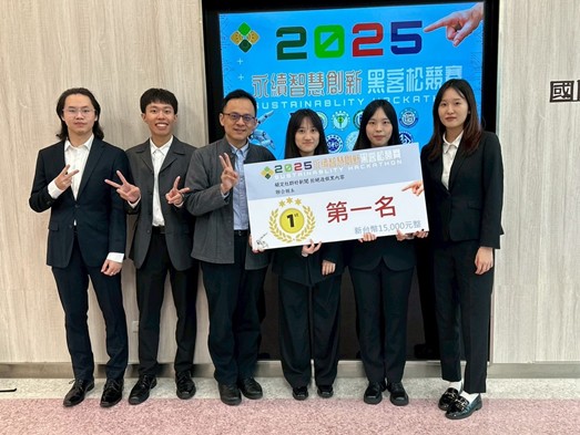本系會碩一曾冠錥、謝居廷、陳柔蓁、黃莘硯及蔡宜軒同學參加【2025永續智慧創新黑客松競賽-“鎖定社群好新聞 拒絕造假黑內容” 場次】榮獲冠軍