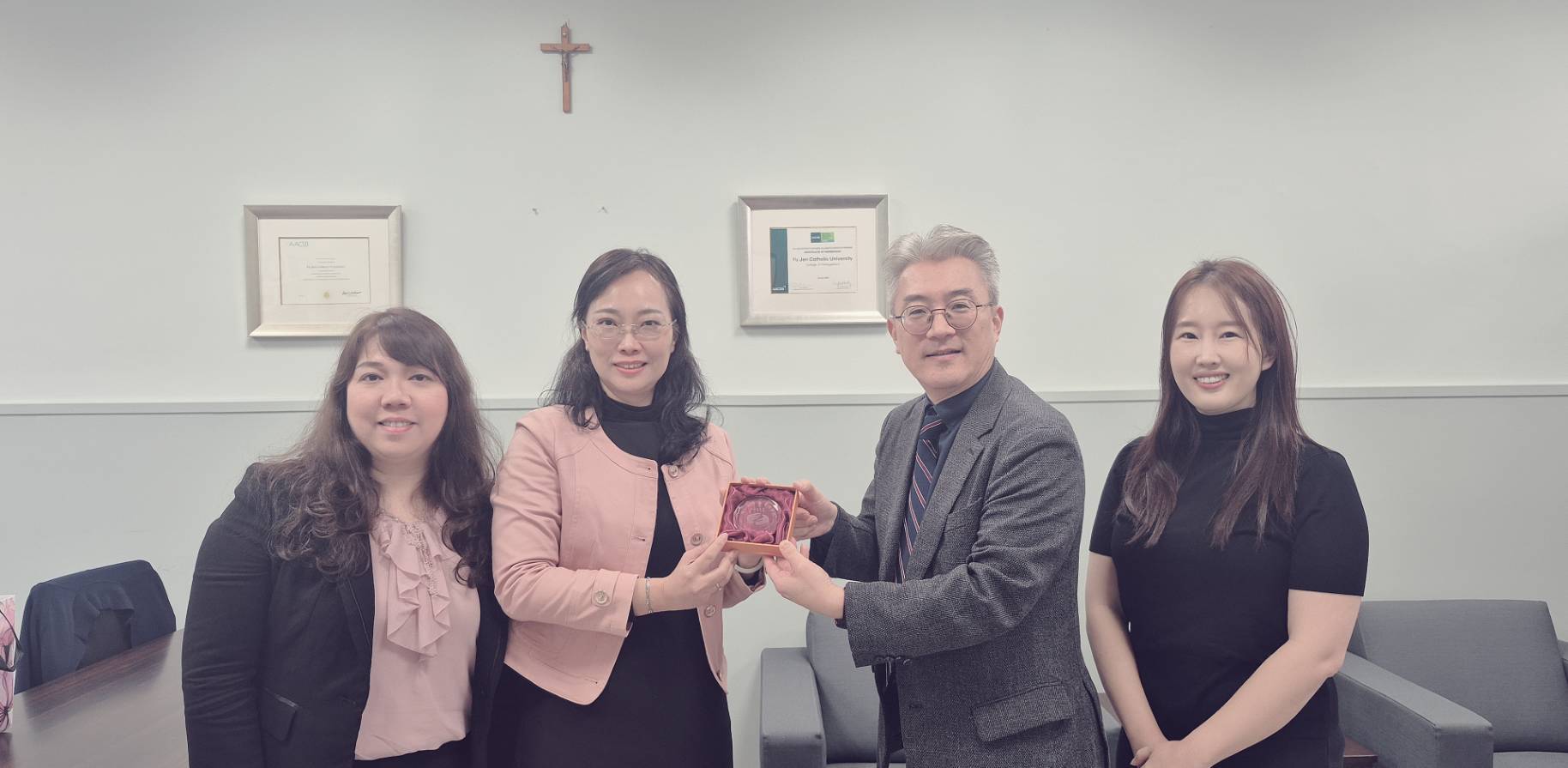 上週韓國又松大學 (Woosong University)來訪,由管理學院黃美祝院長(圖左二)、李禮孟副院長以及國際經管imMBA杜逸寧主任(圖左一),共同與又松大學國際事務資深執行院長Yoo-Taek Lee博士(圖右二)進行交流,雙方就未來國際合作交換想法與經驗。